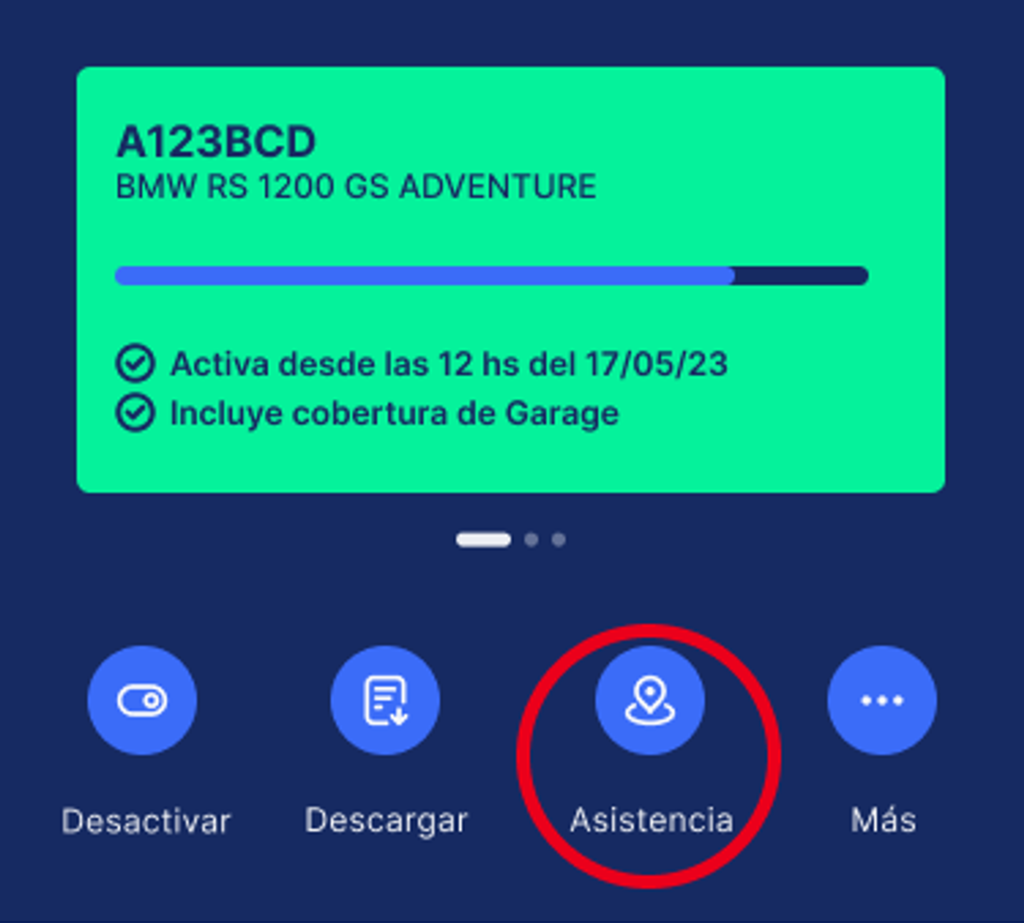 El certificado de cobertura es para la póliza de uso y sólo permite ser descargado cuando la misma se encuentra activada. Podés ver el estado de la póliza de garage ingresando a 'Más'.